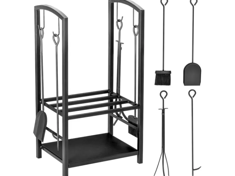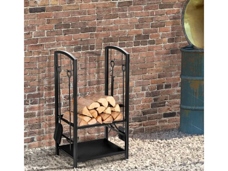 Mit diesem HOMCOM Kaminholzständer brauchen Sie sich keine Gedanken mehr über die sichere Lagerung Ihres Feuerholzes zu machen. Dieses praktische Regal bietet reichlich Platz für Brennholz, Kaminanzünder und weiteres Zubehör. Auch die Belastbarkeit mit bis zu 100 kg kann sich sehen lassen! Zusätzlich erhalten Sie ein 4-teiliges Kaminbesteck, bestehend aus Besen, Schaufel, Schürhaken und Zange. So schützen Sie Ihr Brennholz vor Bodenfeuchtigkeit und können sich vor dem Kamin gemütlich entspannen.