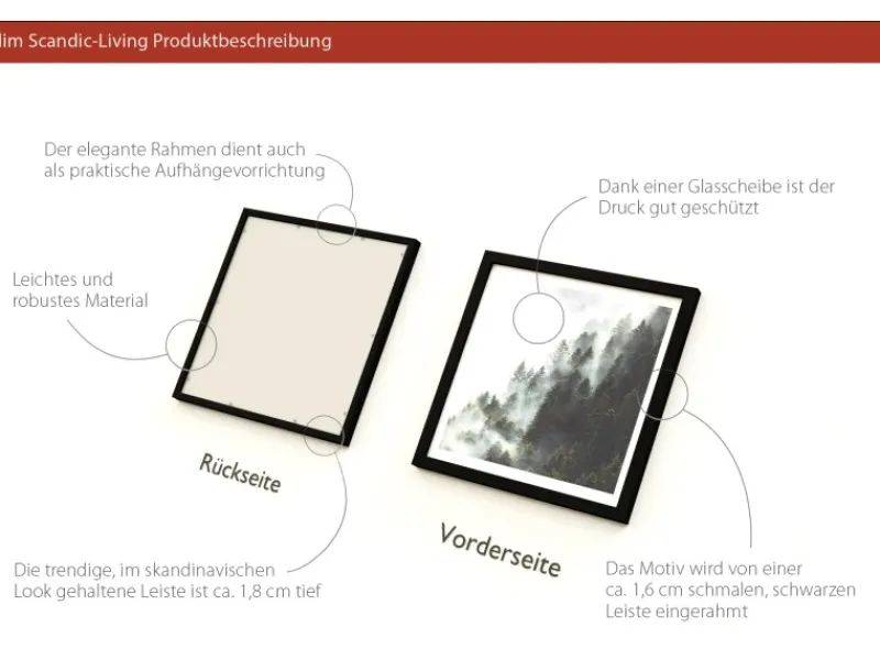 Das harmonische Bild mit Rahmen ist ein tolles Deko-Element und strahlt durch die dezente Farbgebung Ruhe und Gemütlichkeit aus. Schaffen Sie sich Ihre persönliche Wohlfühlzone in Ihrem Zuhause und wählen Sie aus verschiedenen Motiven das passende Bild ganz nach Ihrem Stil. Das Bild ist aus sorgfältig ausgewählten und EU zertifizierten Materialen sowie zu 100 % von Hand in Deutschland gefertigt. Dank der speziellen Veredelung strahlen die Farben und behalten auch über Jahre ihre Leuchtkraft. Zudem lässt sich das Bild ganz einfach mit einem feuchten Lappen abwischen.