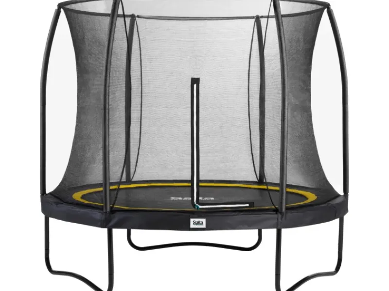 Die Konstruktion des Stahl-Topringes hält das Sicherheitsnetz in seiner eleganten Formposition und somit bleibt das weiche, feinmaschige Netz angenehm dicht. Außerdem hat das Trampolin ein 20 mm dickes und 29 cm breites Schutzpolster, so dass die doppelt verzinkten konischen Federn vollständig abgedeckt sind. Der doppelseitige Reißverschluss ermöglicht einen problemlosen Zugang zum Trampolin, sodass Sie es bequem betreten und schließen können. Das Spielgerät bietet ein einzigartiges Erlebnis beim Springen und jahrelangen Spaß.