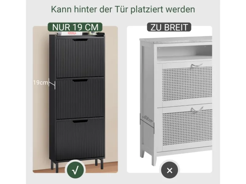 Mit den 3 Klappfächern können Sie ganz frei Schuhen in verschiedenen Größen und Formen aufbewahren.