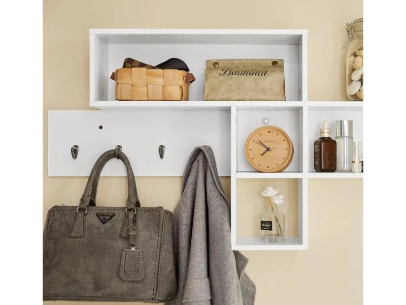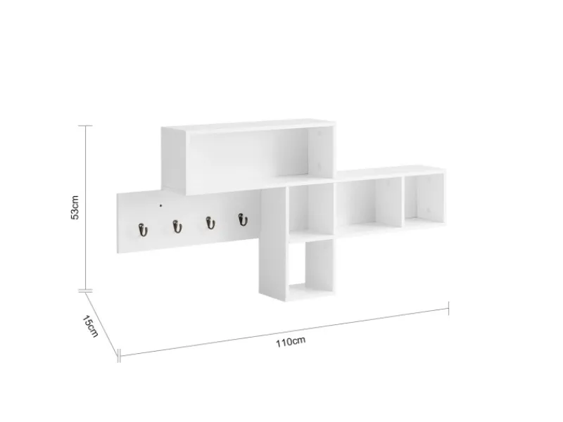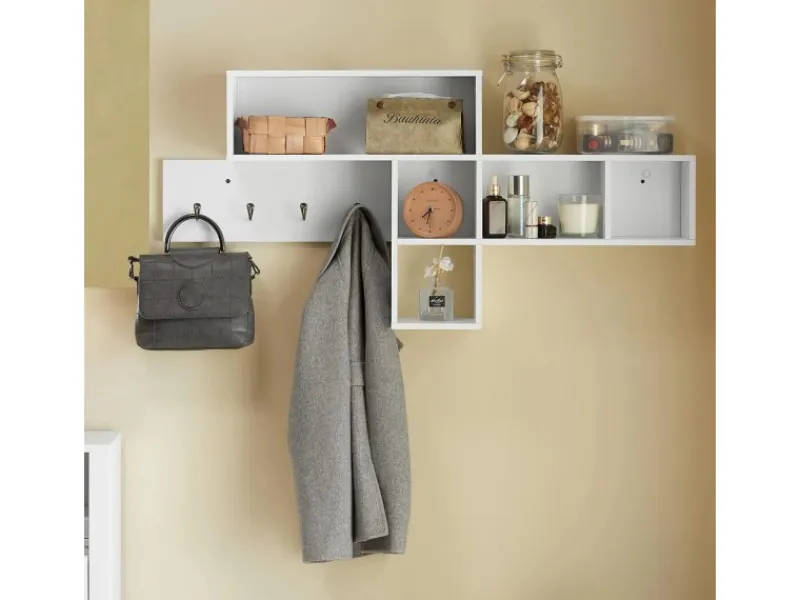 Die 5 Fächer und die 4 Haken ermöglichen es Ihnen, Platz zu sparen, zu organisieren und zu verstauen alle Arten von Gegenständen, Kleidung, Mäntel, Rucksäcke und Handtaschen, Handtücher, Schlüssel oder sogar Fotos.