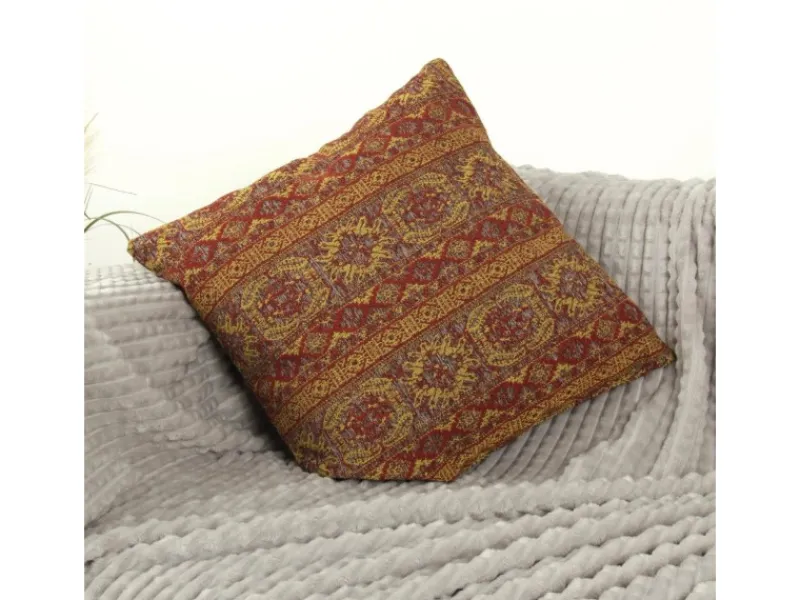 Lieferumfang: Ein Dekokissen in der Größe 45x45cm mit Palmenblatt Druck auf Vorder- und Rückseite in der Farbe Ziegel, bei 30° in der Maschine waschbar