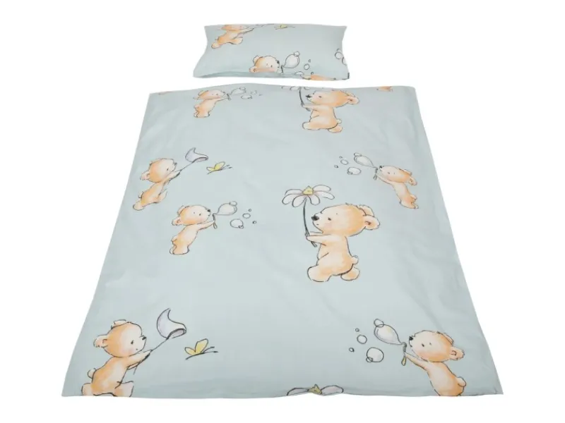 LIEFERUMFANG – Bettwäscheset im Motiv Sterne, Sterne grau, Bärchen Blau oder Bärchen Weiß bestehend aus einem Bettbezug in 100x135cm und einem Kissenbezug in 40x60cm. Die Kinder Bettwäsche passt nicht nur ins Babybettchen, sondern ist auch Ideal für den Kinderwagen, Wiege das Beistellbett oder den Stubenwagen geeignet.