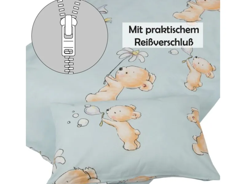2-TEILIGES SET: Ein Kissenbezug 40×60 cm mit Reissverschluß, ein Bettbezug 100×135 cm mit Reissverschluß. Aus 100% reiner Baumwolle. Atmungsaktiv, pflegeleicht und waschbar und frei von Allergenen und Reizstoffen.