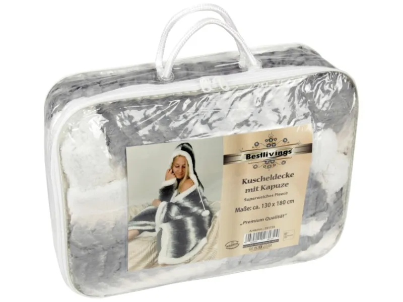 Das weiche Fleece ist federleicht und hat trotzdem ein hervorragedes Wärmevermögen. Durch die schönen Farbverläufe von weiß nach anthrazit wird die Decke auch zu einem Blickfang in Ihrem Zuhause oder auch unterwegs im Urlaub. Die Fleecedecke ist in einer praktischen durchsichtigen Tasche mit Reissverschluß verpackt und so für jede Mitnahme bereit.
