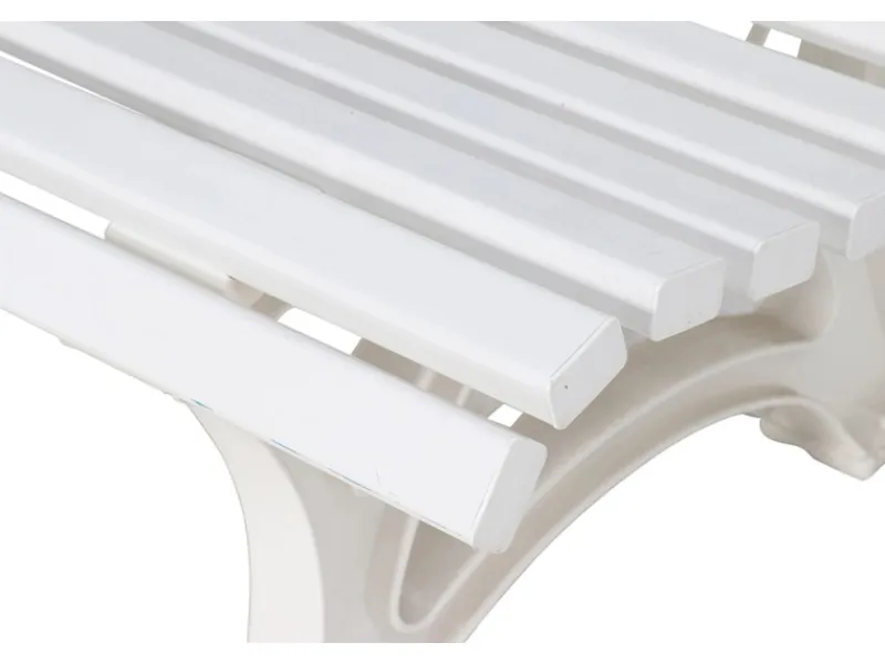 Die Gartenbank Helgoland hat Mehrkammerprofile aus Kunststoff in der Farbe Weiß mit Vollkunststofffüßen. Die Sitz- und Rückenlehne ist vormontiert. Die Bank wird im Karton geliefert. Die Sitzmaße sind: Rückenhöhe: 40 cm, Sitzhöhe: 45 cm, Sitzfläche: Länge 45 cm, Breite 150 cm. Die Bank ist für 3 Personen geeignet.