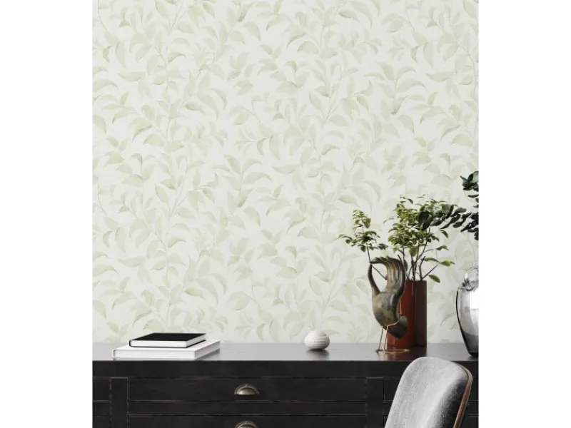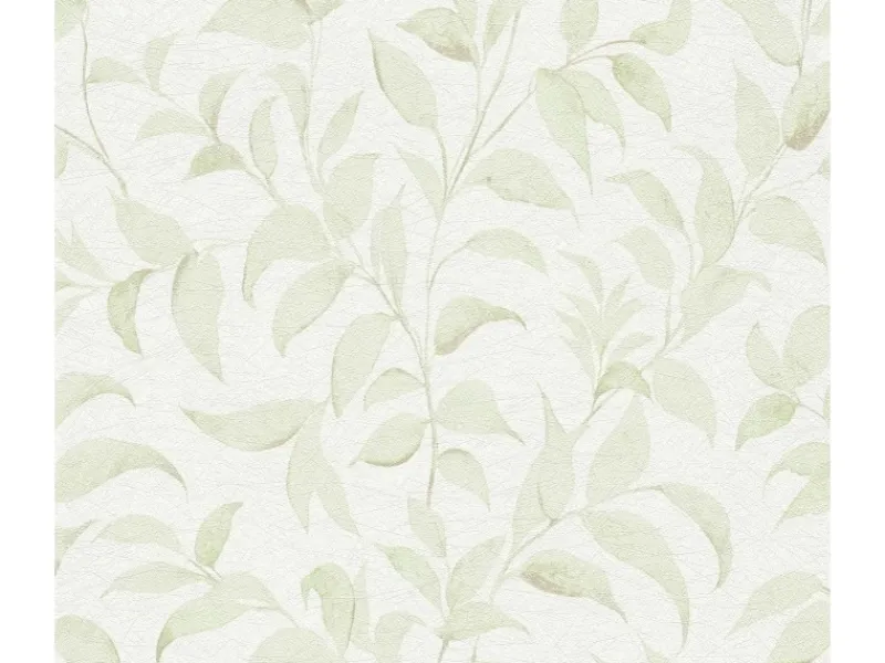 Bricoflor Blätter Tapete Mediterran Grüne Vliestapete mit Ranken für Küche und Flur Mustertapete in Creme Hellgrün mit Struktur