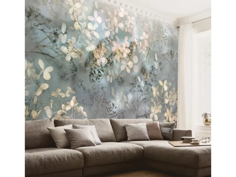 Bricoflor Florale Tapete Transparent Vlies Fototapete mit Blumen im Herbst Moderne Blumentapete in Grau Blau Beige für Esszimmer und Schlafzimmer