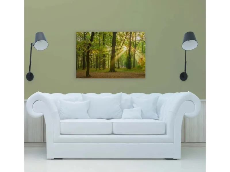 Bricoflor Herbstwald Leinwand Grün Deko Wandbild In 90 X 60 Cm Für Büro Und Schlafzimmer Bild Mit Wald In Sonne Romantisch