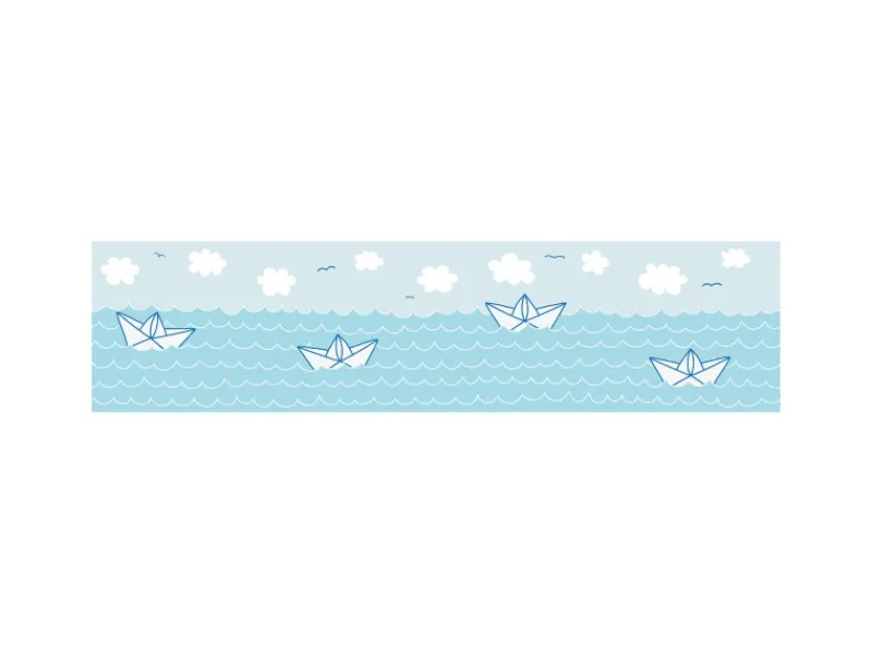Bricoflor Kinderzimmer Bordüre Maritim in Blau Wolken Tapete mit Boot und Meer Ideal für Babyzimmer Selbstklebende Bordüre aus Vlies