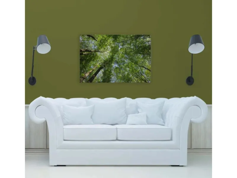 Bricoflor Leinwandbild Wald 120X80 Cm Natur Wandbild Grün Für Wohnzimmer Und Schlafzimmer Deko Leinwand Mit Baumkronen