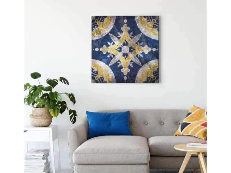 Bricoflor Mosaik Leinwand Bild Orientalisches Wandbild In Dunkelblau Und Gelb Boho Leinwand Bild In Fliesenoptik Ideal Für Küche Und Schlafzimmer