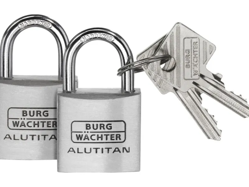 Das praktische und robuste Burg Wächter Vorhangschloss-Set DUO 770 40 SB besteht aus 2 gleichschließenden Schlössern und 4 Schlüsseln. Es ist mit einem massiven Aluminiumkörper ausgestattet, der einen guten Aufbruchschutz bietet und zusätzlich das Innenwerk zuverlässig vor Feuchtigkeit und somit auch vor Rost schützt. Der Bügel ist doppelt verriegelt und stahlhart.