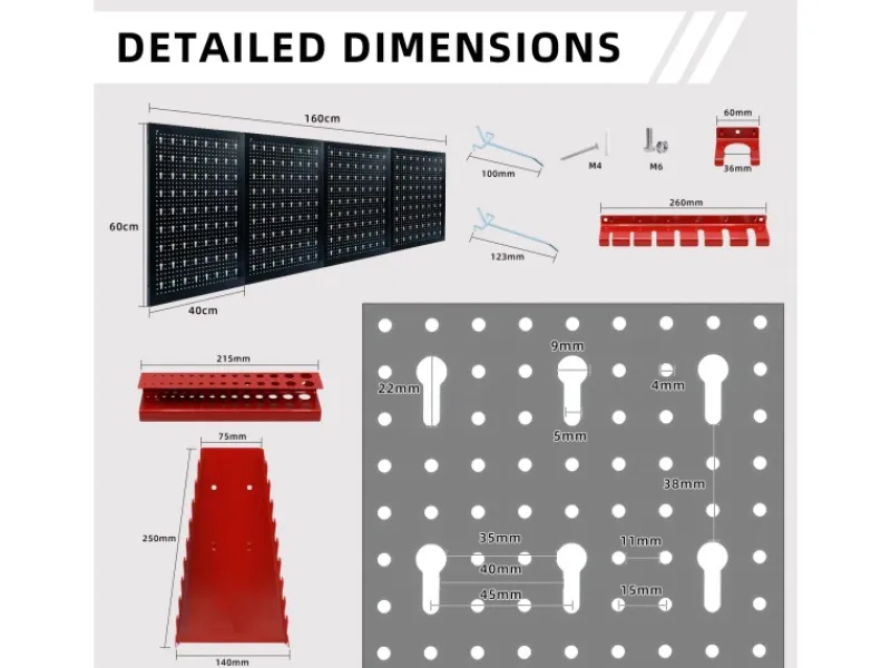 Perforierte Metallwand, langlebig, einzelne Platte bis 15kg, vier Platten bis 60kg.
