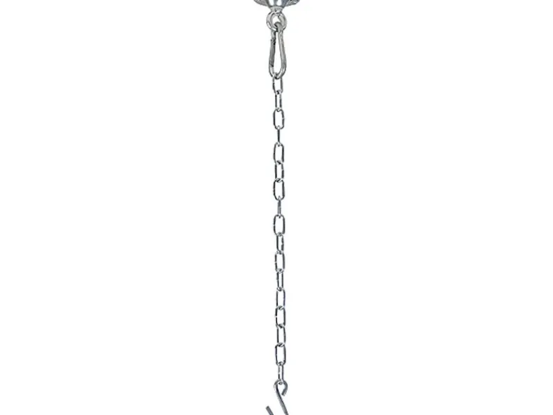 Damit Ihr Hängesessel in jede Richtung schaukeln kann, ohne die Schnüre dabei zu verheddern oder gar abzuscheuern, verfügt der Deckenhaken über ein Kugellager am Karabinerhaken. Die höhenverstellbare Kette, mit einer maximalen Länge von 78 cm, ermöglicht Ihnen, den Hängestuhl beliebig hoch aufzuhängen.