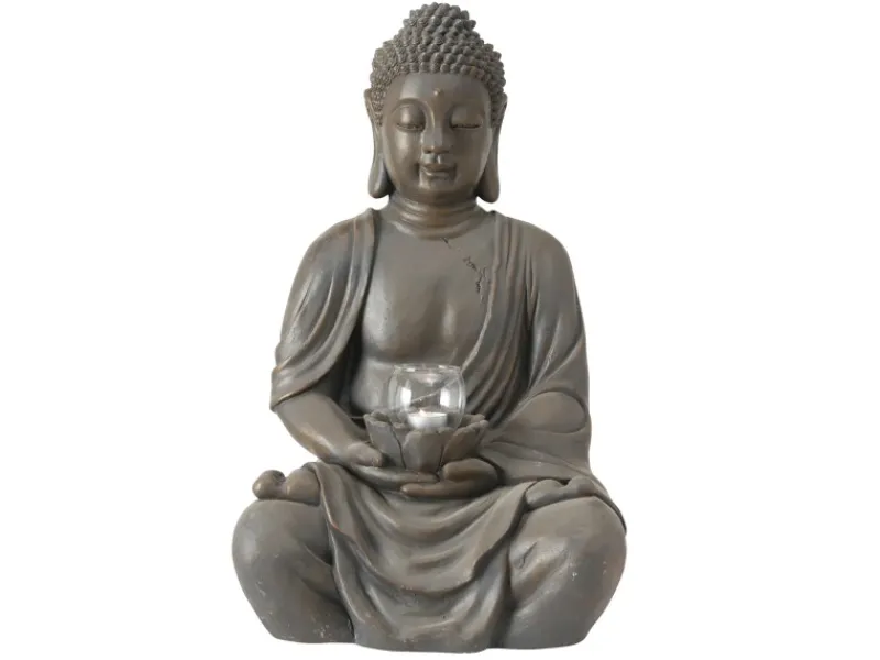 Jedes Stück des Windlichts Buddha ist handgemalt, was ihm eine einzigartige, individuelle Note verleiht. Ideal für entspannende Momente, fügt sich das Windlicht harmonisch in verschiedene Wohnstile ein und sorgt für eine warme, einladende Lichtstimmung.
