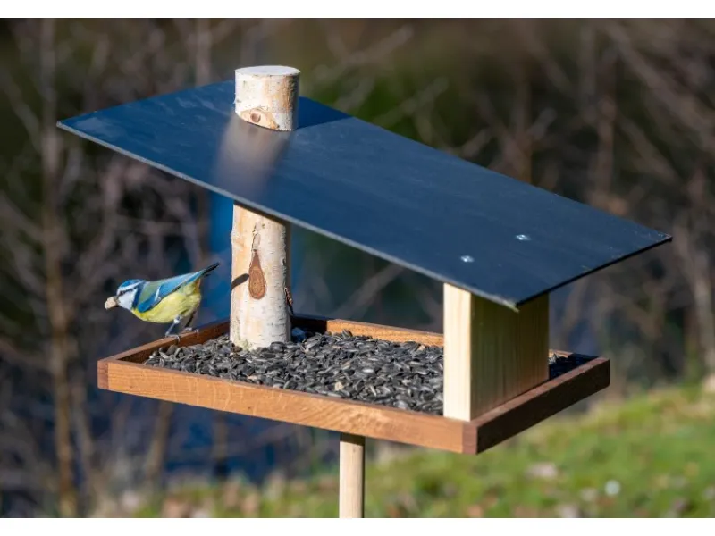 Die Herstellung in europäischer Produktion erfolgt in Handarbeit mit Fokus auf bester Qualität in der Verarbeitung. Die Außenmaße der Vogelfutterstation sind ca. 35 cm x 24 cm x 22 cm bei einem Gewicht von ca. 1,3 kg.