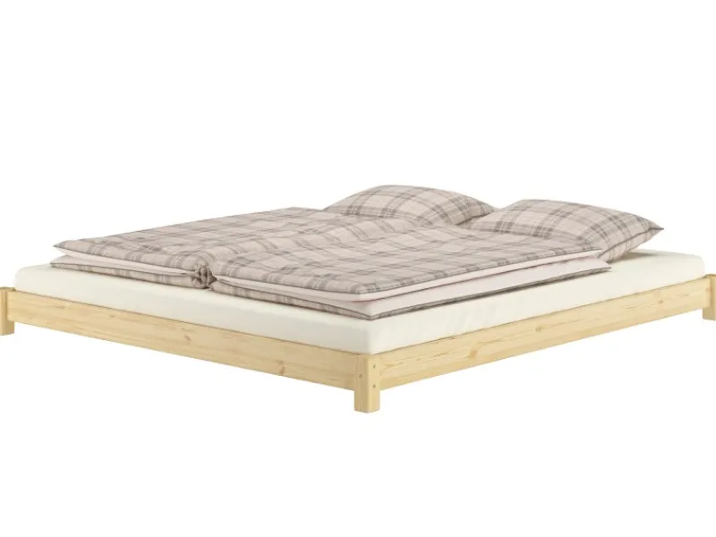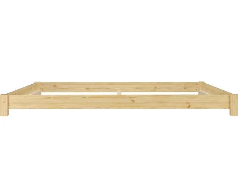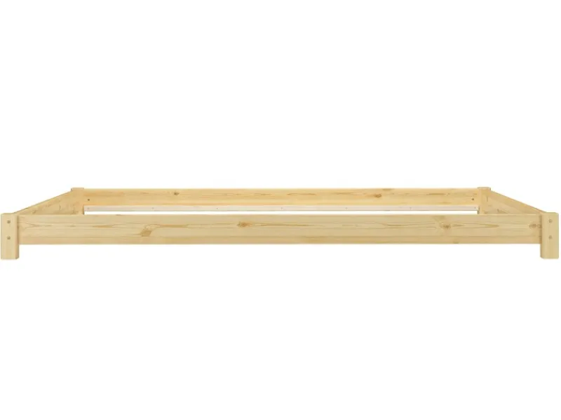 Sehr stabiles Massivholz-Bett 180×200 – in besonders niedriger AusführungAuch geeignet für Gästehäuser, Pensionen, Ferienwohnungen, Kinderzimmer oder Schlafzimmer mit MansardeNaturprodukt Holz… logisch!Beschreibung:Das schlichte, sehr stabile Einzelbett (180×200 cm) aus massivem Kiefernholz bietet einen erholsamen, ruhigen Schlaf.Besonders ideal für kleine Kinder, die oft aus dem Bett fallen – durch die niedrige Rahmenhöhe wird die Verletzungsgefahr deutlich reduziert.Jedes unserer Echtholzbetten hat eine einzigartige Maserung und ist somit ein echtes Unikat.Das verwendete Holz stammt aus europäischen, schonend bewirtschafteten Wäldern – selbstverständlich ohne den Einsatz von Fremdstoffen.Die Montage ist schnell und einfach dank beiliegender Aufbauanleitung.Das Bett ist ideal für Zimmer mit niedriger Deckenhöhe, wie z. B. Mansarden, kleine Kinderzimmer, Gästezimmer oder minimalistisch eingerichtete Räume.Die hochwertige Klarlack-Versiegelung schützt das Holz und erleichtert die Reinigung – einfach mit einem feuchten Tuch oder Staubwedel abwischen.Trotz der kompakten Bauweise ist das Bett äußerst belastbar – die statische Tragkraft liegt bei bis zu 120 kg.Maße:Liegefläche: 180 x 200 cmLänge Seitenbrett zwischen den Pfosten: 200 cmAußenmaße: ca. 188,5 x 208 x 17 cm (B x L x H)Pfostenstärke: ca. 67 x 67 mmSeitenbretter: ca. 20 x 110 mmEinlegetiefe: ca. 8 cmHöhe der Bettkante: ca. 17 cmBodenfreiheit unter dem Bett: ca. 5 cmGesamtgewicht (ohne Zubehör): ca. 11 kg