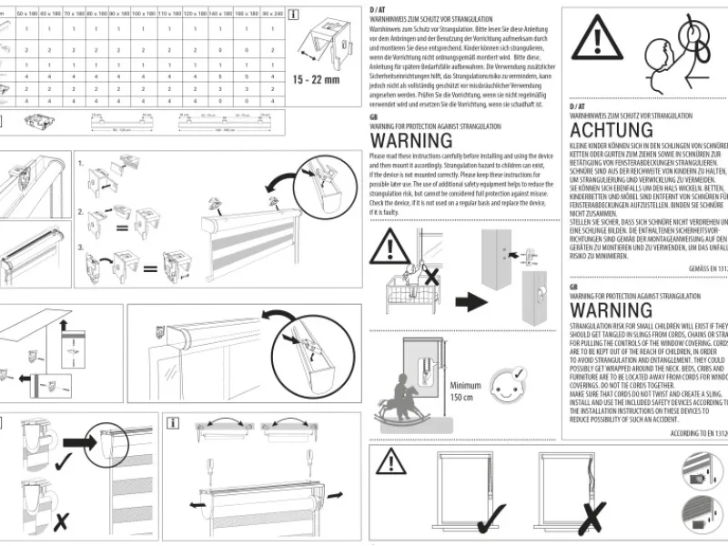 Die Montage gestaltet sich besonders einfach, da das Rollo bereits auf einer Montageschiene vormontiert geliefert wird. Die Bedienung des Doppelrollo de Luxe erfolgt über eine Kette mit Schwenkgetriebe, dadurch fällt die Bedienung besonders leicht. Die Kette kann wahlweise rechts oder links montiert werden.