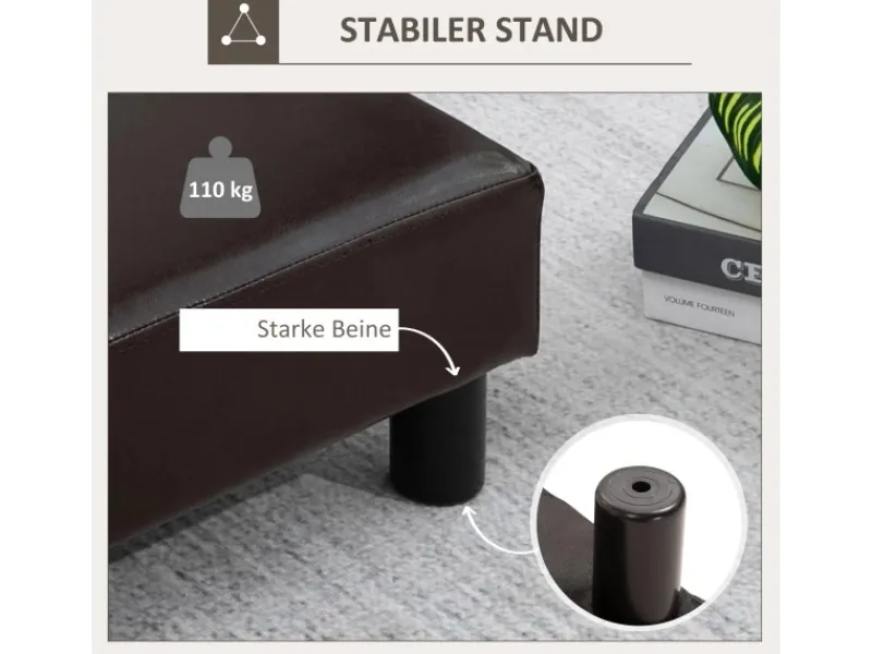 Der Fußhocker verfügt über hohe Stabilität und Qualität und kann von Ihnen langfristig verwendet werden. Er kann unterschiedlich als Eingangsbank, Couchtisch-Fußstütze usw. verwendet werden kann. Neben seiner eigentlichen Funktion hat er auch elegantes Aussehen und kann Ihres Zuhause oder Büro schön schmücken. Die Oberfläche wird hergestellt aus Kunstleder, d.h., es ist wasserresistent und leicht sauber zu machen.