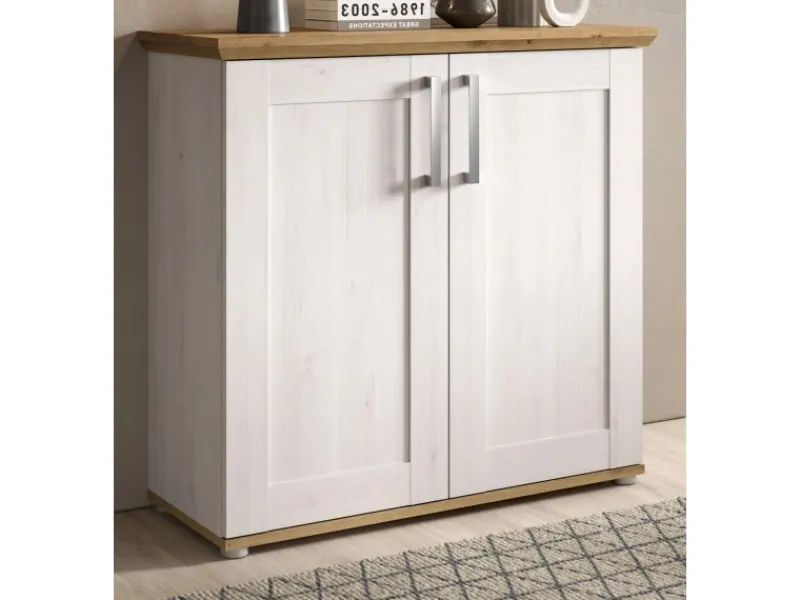 Stilvolle Kommode Mirano im Landhausstil in weißer Lärche und Artisan Eiche.