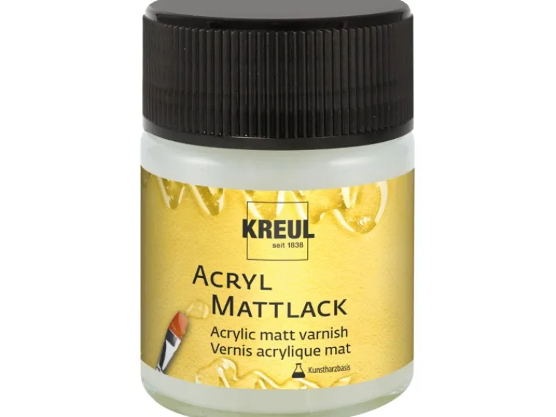 Damit kleine und große Kunstwerke vor Schmutz und Nässe geschützt werden, kommen die Kreul Überzugslacke zum Einsatz. Transparent und wasserfest werden sie auf Oberflächen aufgetragen, die bereits durchgetrocknet sind. Sie können auf viele Untergründe aufgetragen werden, sind speichelecht und in den Effekten glänzend, matt oder seidenglänzend erhältlich.