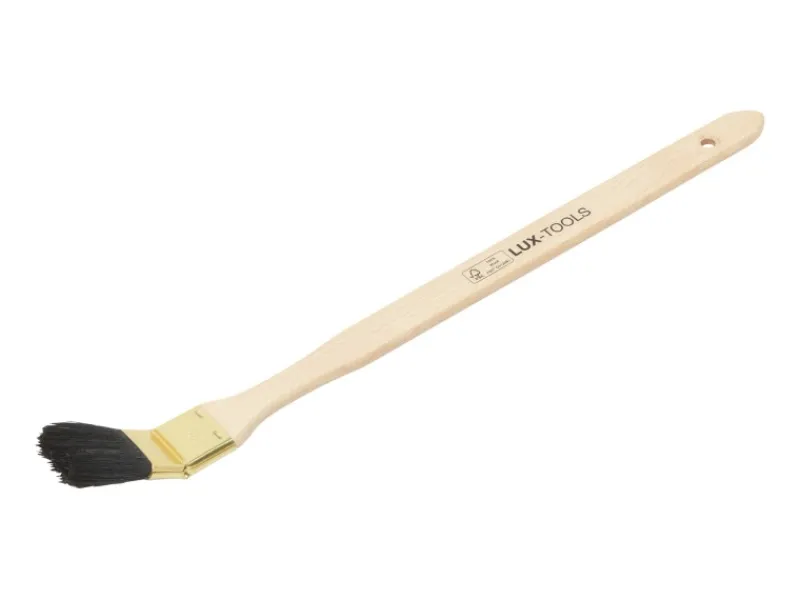 Der LUX-TOOLS Eckenpinsel Kunstharz hat reine schwarze Chinaborsten, eine vermessingte Zwinge sowie einen Naturholzstiel. Er eignet sich auch für schwer zugängliche Flächen und sorgt für ein sehr gutes Streichergebnis. Der Pinsel ist auch für lösemittelhaltige Lacke geeignet.