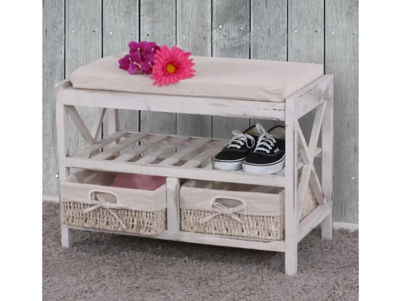 Dieses praktische und schicke Schuhregal ist ein echter Hingucker und wird jeden Raum aufwerten! Es findet nahezu in jedem Wohnbereich eine vielseitige und praktische Verwendung. 2 Schubladen und ein Ablagefach bieten Stauraum und schaffen Ordnung. Nebenbei kann man dieses auch als Sitzgelegenheit nutzen. Ein Schuhregal das den Herausforderungen des Alltags eben durch und durch gewachsen ist!