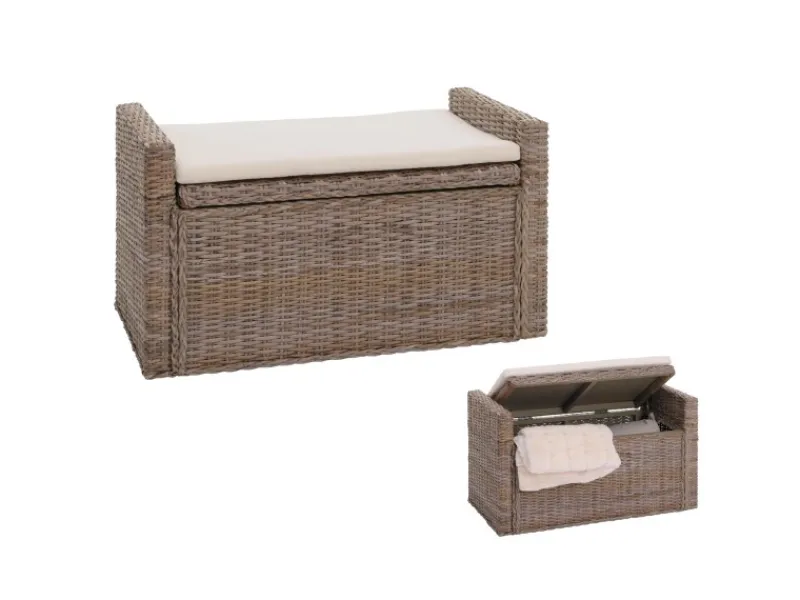 Das inkludierte Sitzkissen sorgt für zusätzlichen Komfort und lädt zum Verweilen ein. Hochwertige Materialien und eine sorgfältige Verarbeitung garantieren Langlebigkeit und Stabilität, sodass Sie lange Freude an diesem Möbelstück haben werden. Entdecken Sie die Vielseitigkeit unserer Sitzbank und schaffen Sie mehr Ordnung und Gemütlichkeit in Ihrem Zuhause.