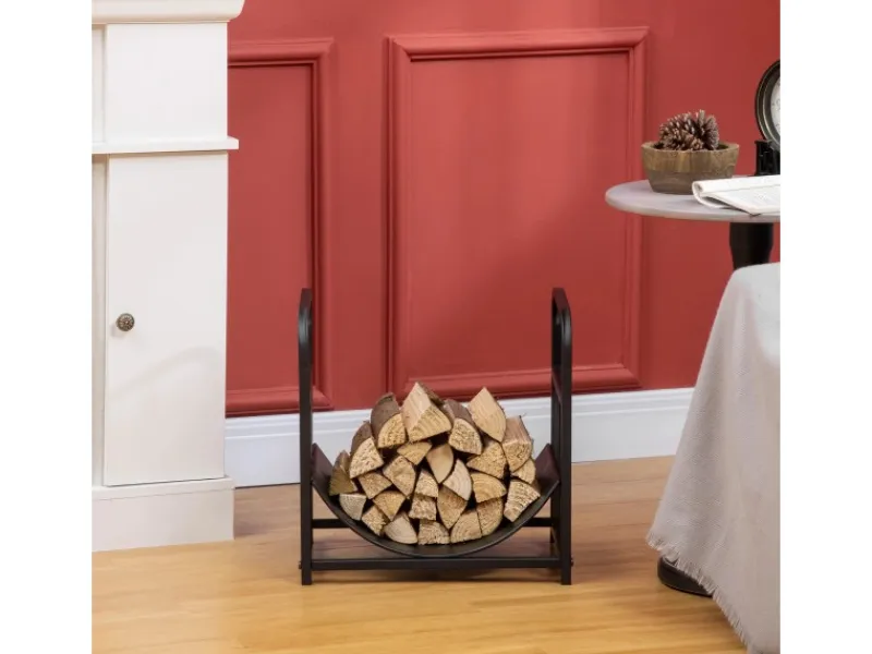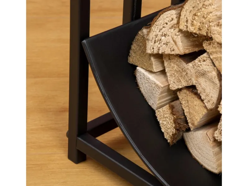 ● Der bogenförmige Boden nutzt den Raum für Holzscheite besser