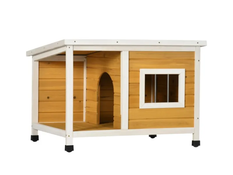 Die PawHut Hundehütte ist ein wahres Paradies für Hunde. Sie verfügt über eine sonnige Veranda und einen schattigen Innenraum. Durch das aufklappbare Dach können Sie Ihren Schützling streicheln und Leckerlis reichen. Ihre Fellnase wird es immer warm und trocken haben, denn das wetterfeste Gehäuse und der praktische Bodenabstand schützen sie vor Kälte und Regen. Die Hundehaus ist aus sicheren und besonders schonend Materialien hergestellt.