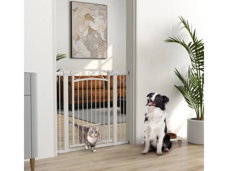 ● Integrierte Katzentür des Treppenschutzes ist vorteilhaft für Haushalte mit mehreren Haustieren