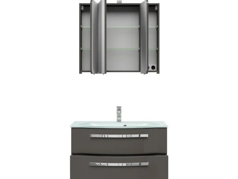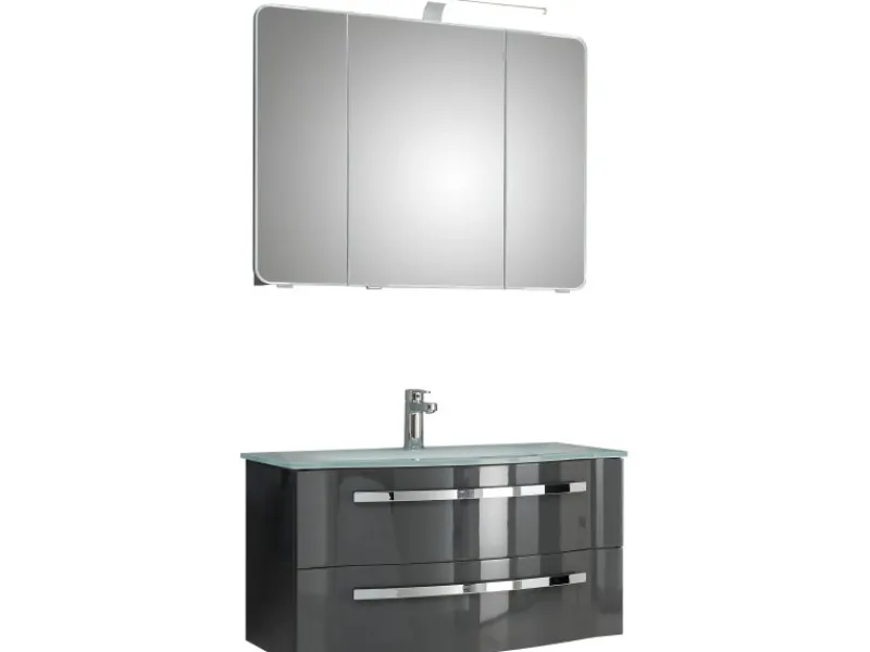 Modernes Badmöbel-Set mit pflegeleichten Hochglanz-Fronten in Steingrau