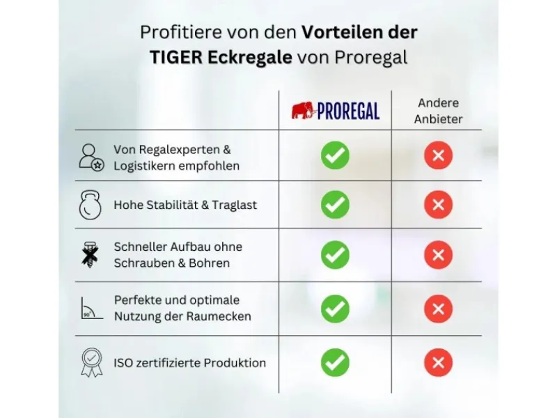 Das Eckregal ist hervorragend kombinierbar mit dem Schwerlastregal TIGER, das mit einer Tiefe von 45 cm und einer Breite von 90 cm die Lagerfläche perfekt und ansatzlos erweitert.