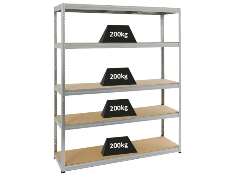 5 Fachböden aus MDF-Holzplatten mit einer Traglast von jeweils 200 kg & einer Stärke von 8 mm