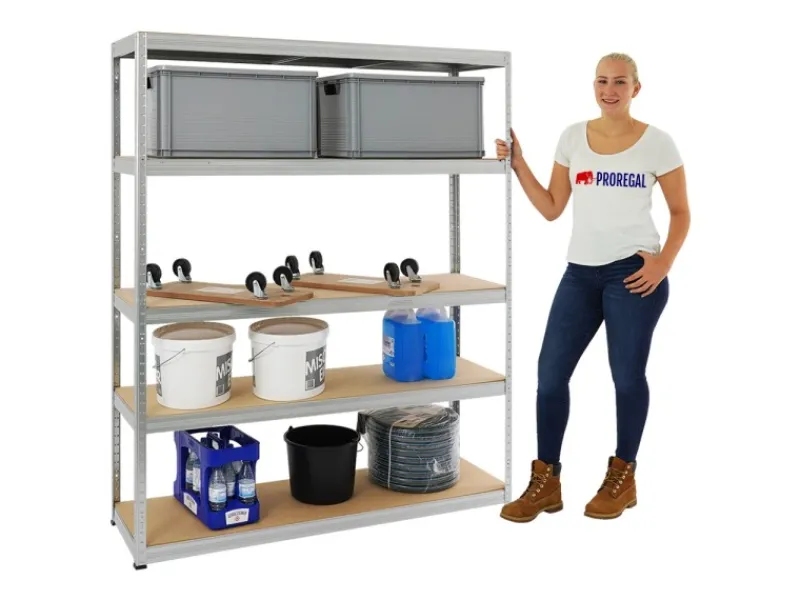 Mit dem Schwerlastregal GIANT ELEPHANT von PROREGAL ist ein eines unserer Dickschiffe im Steckregalsortiment und ein echtes Stauraumwunder. Mit einer Fachbodenlast von 200kg und einer Höhe von 180cm und einer Breite von 180cm ist das Regal für die Werkstatt oder größere Lasten in der Garage bestens geeignet. Bei der Tiefe hast Du die Wahl entweder 45cm oder sogar 60cm für noch mehr Lagerfläche.