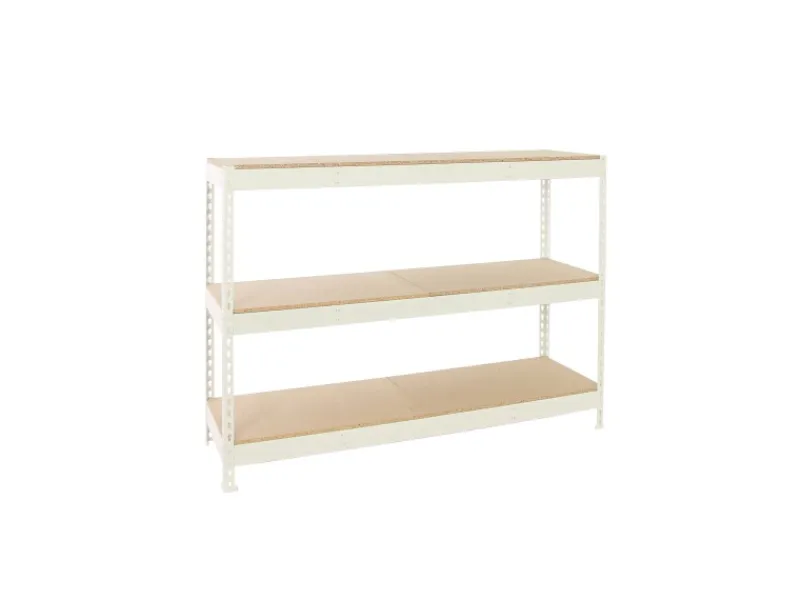 Das Metall ist pulverbeschichtet, um eine lange Lebensdauer sicherzustellen und entgratet, um unangenehme Schnittkanten zu beseitigen. Das Metallprofil der Vertikalstreben ist belastbarer als viele im Handel erhältliche Schwerlastregale.