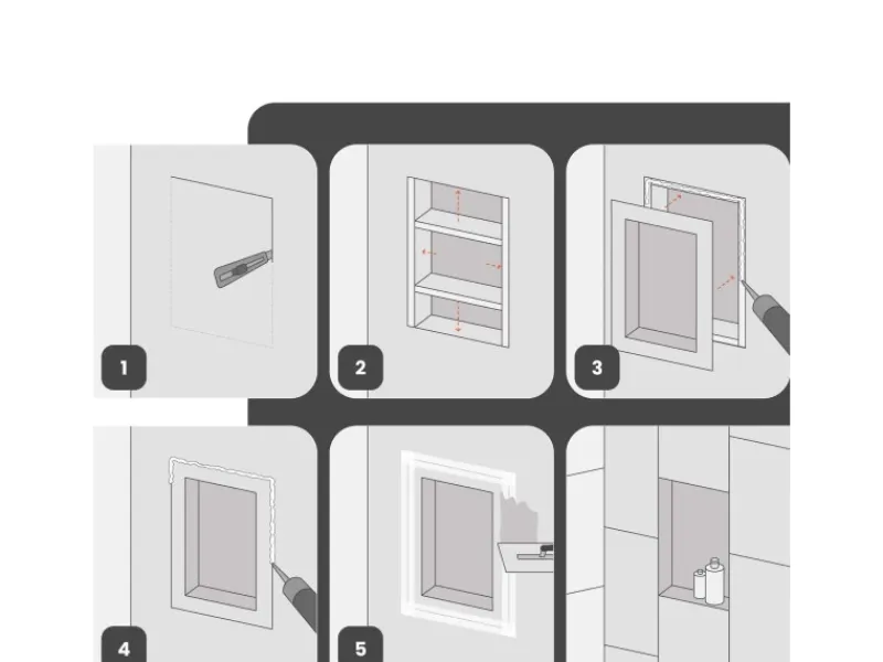 Wasserdichte, platzsparende Wandnische schafft zusätzlichen Stauraum in Bad, Küche oder Büro