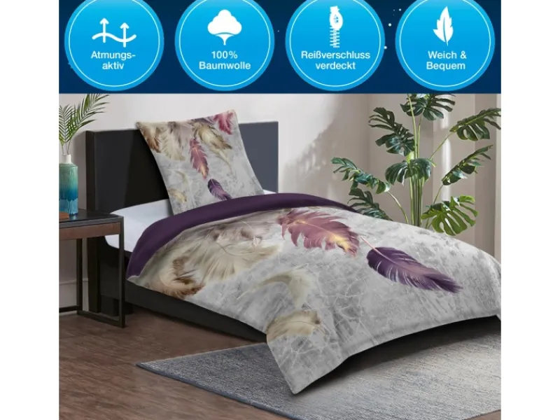 Durch die atmungsaktive und hautfreundliche Baumwolle schläft es sich besonders gut. Die feuchtigkeitsabsorbierende und temperaturausgleichende Bettwäsche sorgt für ein ideales Schlafgefühl.