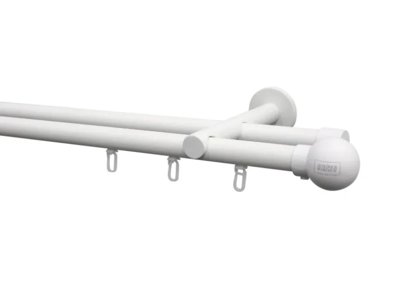 Bei Befestigung unter dem Träger und Lauföffnung nach unten kann die gesamte Stangenlänge mit passenden Gleitern genutzt werden. Die Dekoration von Ösen- und Schlaufenschals sowie die Nutzung von Gardinenringen sind ebenfalls möglich. Die Trägerlänge (Wandabstand der Gardinenstangen) beträgt 8 cm und 14 cm.