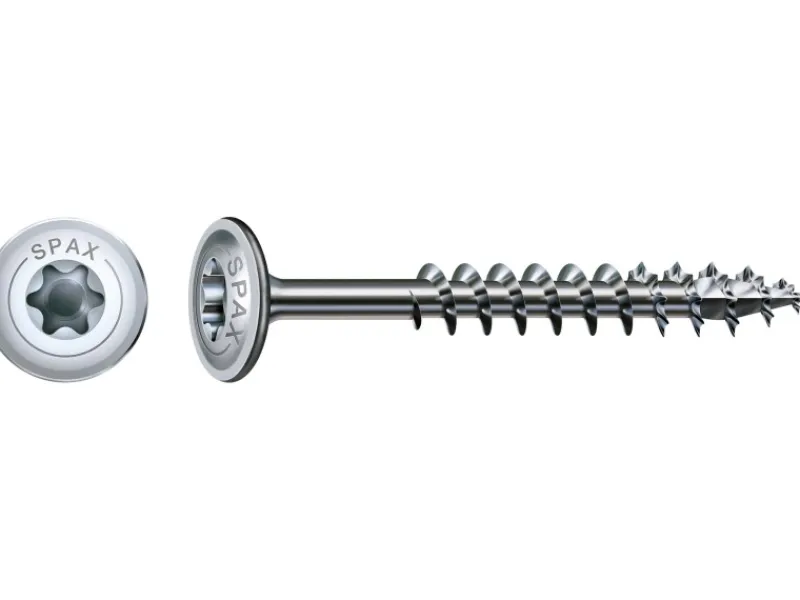 Der T-Star plus-Antrieb von Spax zeichnet sich durch eine sehr gute Kraftübertragung aus, wodurch Durchrutschen und Runddrehen fast vollständig vermieden wird. Schrauben mit T-Star Antrieb lassen sich mit kleinem Werkzeug eindrehen wodurch sie besonders für schwer zugängliche Stellen geeignet sind. Zusätzlich wird beim schrauben kein großer Anpressdruck benötigt um ein Verrutschen zu vermeiden. Die Wirox Holzschraube verfügt über einen deutlich besseren Korrosionsschutz als blanker Stahl. Aber nicht nur der Schutz vor äußeren Einflüssen ist deutlich besser, sondern auch die Optik wird aufgewertet. Der Tellerkopf bietet eine vergrößerte Auflagefläche auf dem Werkstück und hat dadurch erheblich höhere Kopfdurchzugskräfte/Andruckkraft. Außerdem ist diese Kopfform besonders platzsparend durch flach aufliegenden Kopf, daher ideal zur Befestigung von Hartfaserplatten auf der Rückseite von Schränken und Regalen.