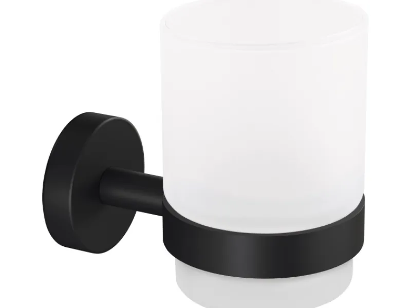 Clearance Tesa Moon Black Zahnputzbec. Halter Schwarz Matt Satiniertes Glas + Klebelösung