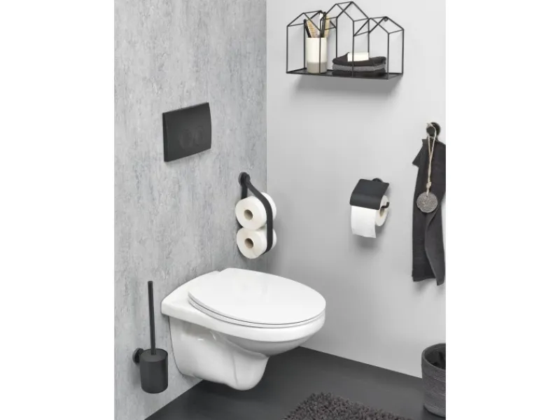 Die Serie Urban in trendigem Schwarz bietet modernes, industrielles Design. Individuellen Touch verleihen Sie den Accessoires mit den beigefügten Dekor-Ringen in Dunkelgrau oder Kupfer. Der Haken lässt sich einfach mittels der integrierten Klebefolie an der Wand befestigen.