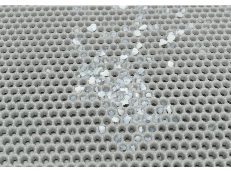 Die Trixie Siebmatte besteht aus 2 Lagen, die durch einen leicht lösenden Klettverschluss miteinander verbunden sind, so dass Ihr Katzenstreu einfach wieder in die Katzentoilette gegeben oder entsorgt werden kann. Die Siebmatte besteht aus formbeständigem Gummi mit Wabenmuster und ist wasser- und urinbeständig. Dank der offenen Kante ist die Matte außerdem leicht zu reinigen und schont die Pfoten Ihrer Katze.