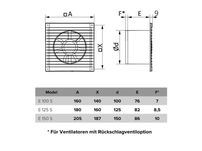 Badlüfter E 100 ST in ultraflachem Design mit Nachlauffunkion