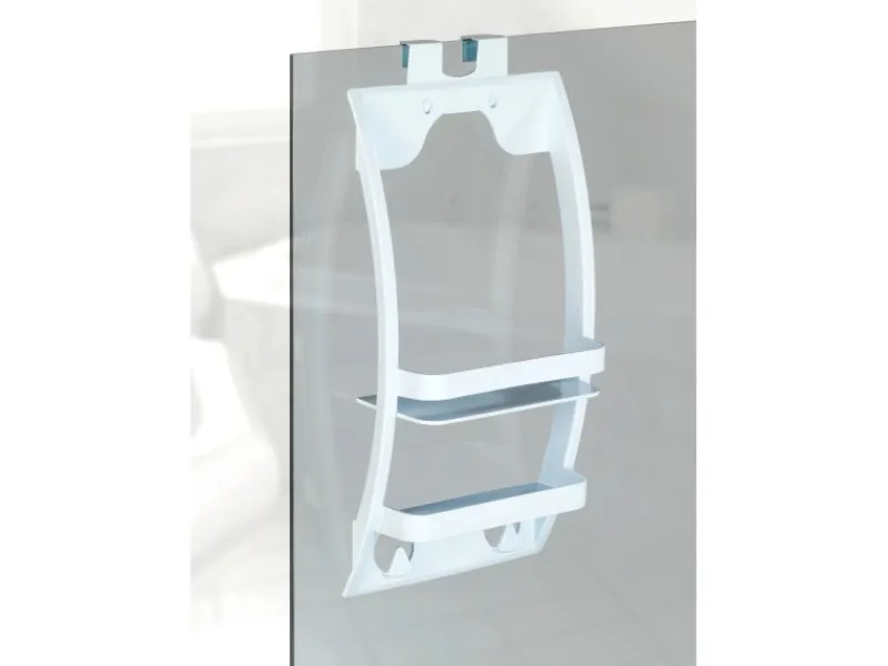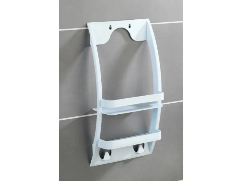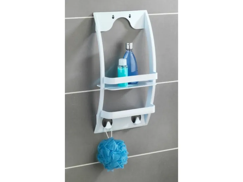 Dieses Badregal ist eine praktische und platzsparende Ablagemöglichkeit für Ihre Badutensilien. Es eignet sich perfekt für Bäder sowie Duschen und überzeugt mit zwei Ablagekörben und zwei Haken. Die Montage ist besonders einfach.