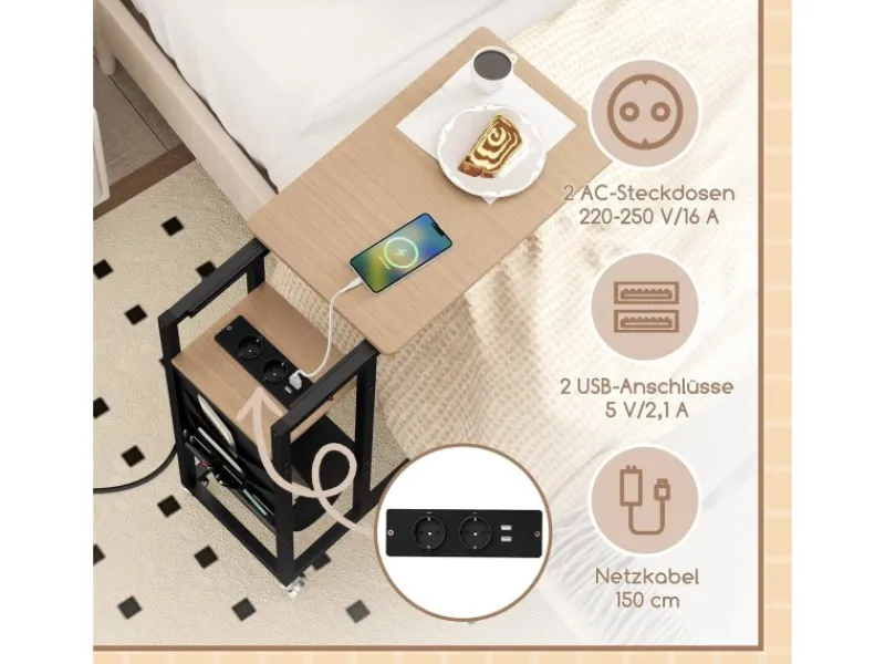 Platzsparender C-förmiger Beistelltisch passt perfekt in enge Räume