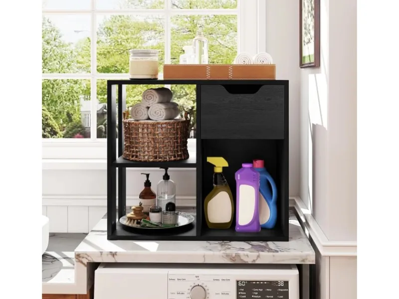 3 offene Regale und 1 Schublade bieten reichlich Stauraum
