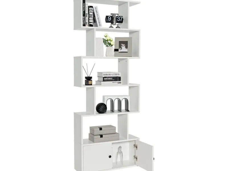 Viel Stauraum mit 5-stufigem offenem Regal und einem geschlossenen Schrank