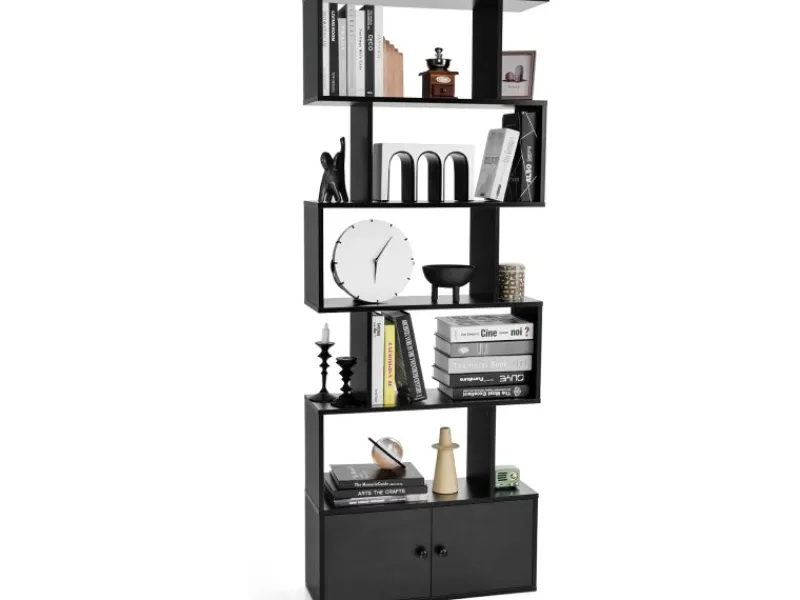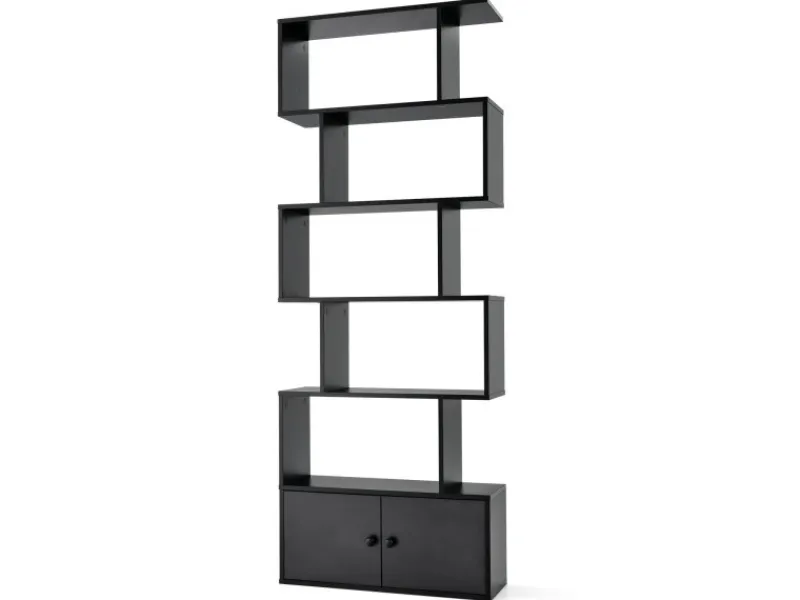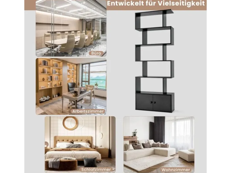 Viel Stauraum mit 5-stufigem offenem Regal und einem geschlossenen Schrank